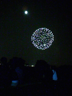月と花火が並んで見える場所にいたので思わずカシャっと。